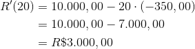 Aplicando esses dados na expressão de R', podemos calcular a derivada especificamente no ponto de interesse.